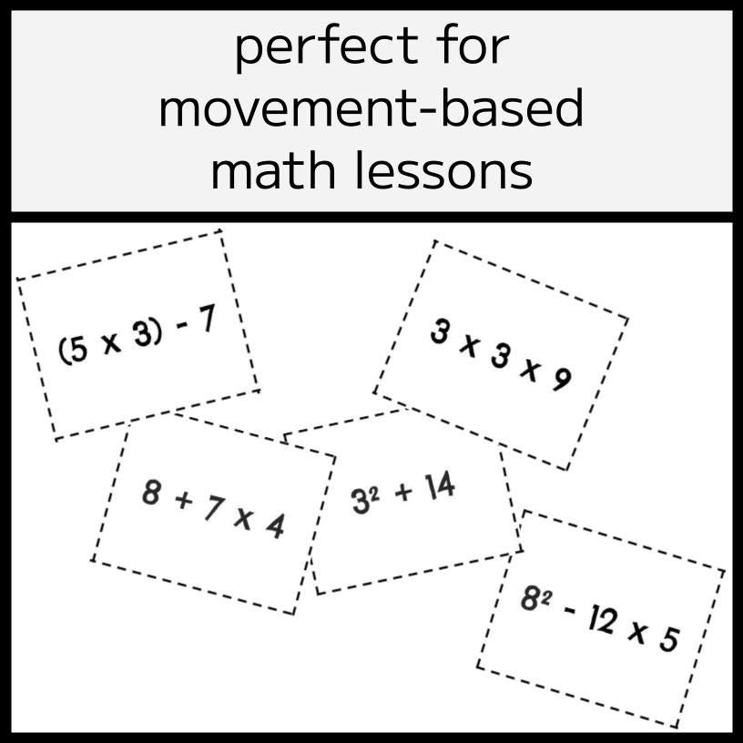 Simply print the included BEDMAS problem cards, place them on chairs, and play music. When the music stops, students sit and solve the problem on their chair before the next round begins!
